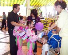 在现场并有营救中国受迫害法轮功儿童的义卖声援,装扮成纯真仙童的小弟子,将一张张营救孤儿的明信片递交游客,告诉围观的叔叔阿姨们,在对岸有着一群和他们一样可爱的小朋友,可是他们的父母因为修炼法轮功而遭迫害,他们被迫失学,正处在无双亲照顾,流离失所、被歧视的困境中,请帮助他们来到自由国家,获得妥善的照顾。
