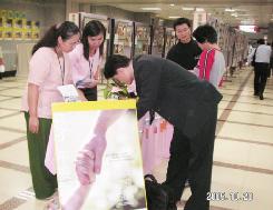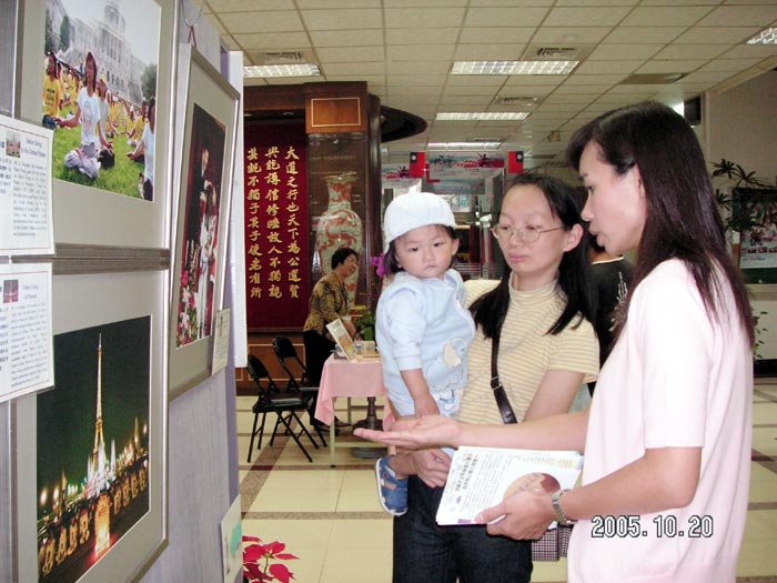 学员在展场巧遇县长,邀请县长为在中国受迫害的法轮功儿童签名,县长微笑着说:“已经签好了!”县府工作人员并表示,展览这几天下来,已有人开始炼功了。