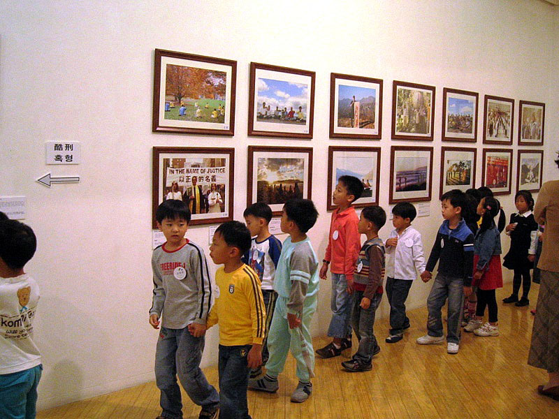 ![]() 学生观看摄影作品 | ![]() 认真听迫害真象 | ![]() 认真听迫害真象 |