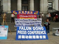 黄华华在到达加拿大温哥华的第二天(10月21日)上午,就在其去维多利亚岛(卑诗省府所在地)的船上,接到了卑诗省最高法院的传票。法轮功学员于21日中午时分在温哥华市中心召开了新闻发布会,宣布段凯文起诉黄华华一事。