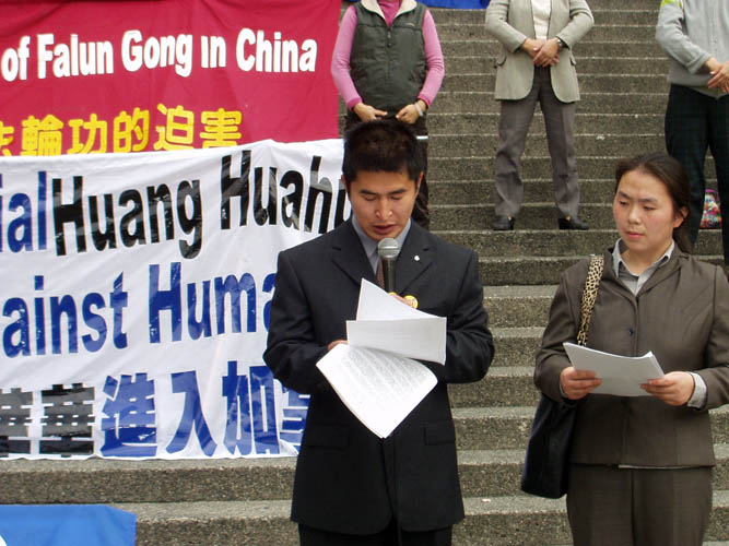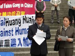 最后,段凯文说,昨天,我根据加拿大法律,向卑诗省最高法院正式对黄华华提出诉讼。今天,我希望提醒卑诗省省长和所有加拿大官员,黄华华是一个犯有酷刑罪和反人类罪的罪犯,他不能代表中国人民,加拿大也不应该欢迎这样的罪犯。最后,我也呼吁,加拿大政府和人民伸出援助之手,营救正在遭受迫害的我的妈妈。