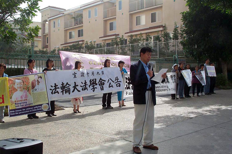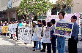 • 洛杉矶法轮功学员中领馆前宣读公告 吁弃恶从善(图)