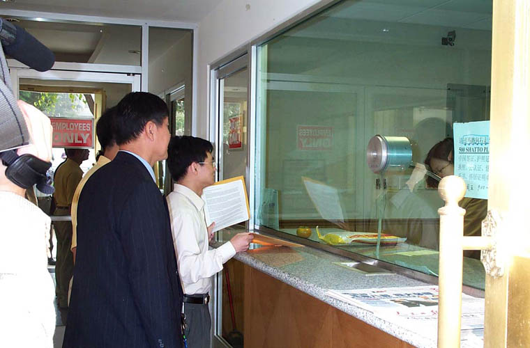 • 马来西亚学员中使馆前宣读法轮大法学会公告(图)