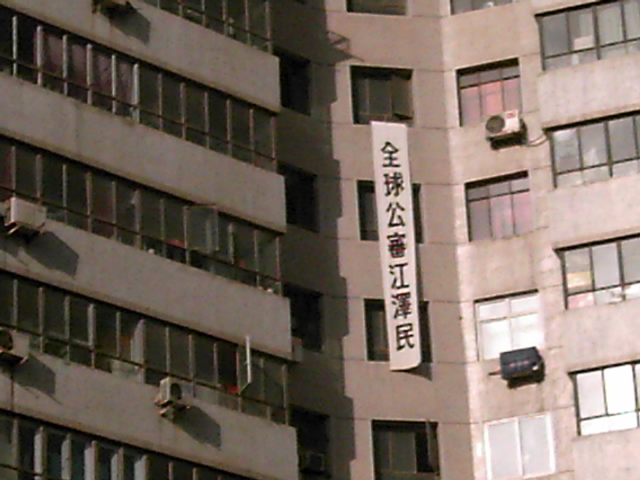 • 石家庄桥头出现横幅“全球公审江泽民”
