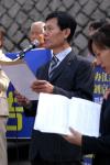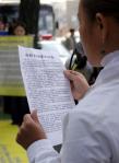 之后,“韩国法轮大法学会”代表向中国大使馆递送了公告。接着又移到中国领事馆,再次举行了活动。恰巧当天中国领事馆前有许多排队等待办理领事业务的中国人,他们目睹了活动的全过程,有些中国人仔细的阅读了印在横幅上的公告,深表关心。