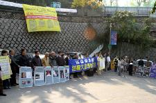 ![]() 在中领馆前宣读“法轮大法学会公告” | ![]() 中领馆前有许多排队等待办理领事业务的中国人 | ![]() 在釜山驻韩中领馆前宣读“法轮大法学会公告” |