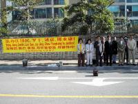 10月24日上午10时,釜山、蔚山、庆南地区的法轮功学员们也齐聚于釜山海云台区的中国领馆前宣读了“法轮大法学会公告”。