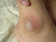 ![]() 雷明在吉林监狱被长期强制坐板后造成的臀部肌肉坏死结痂 | ![]() 雷明脚踝在吉林监狱被迫害后留下的伤痕 |