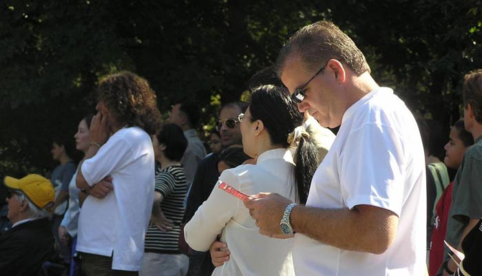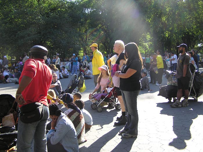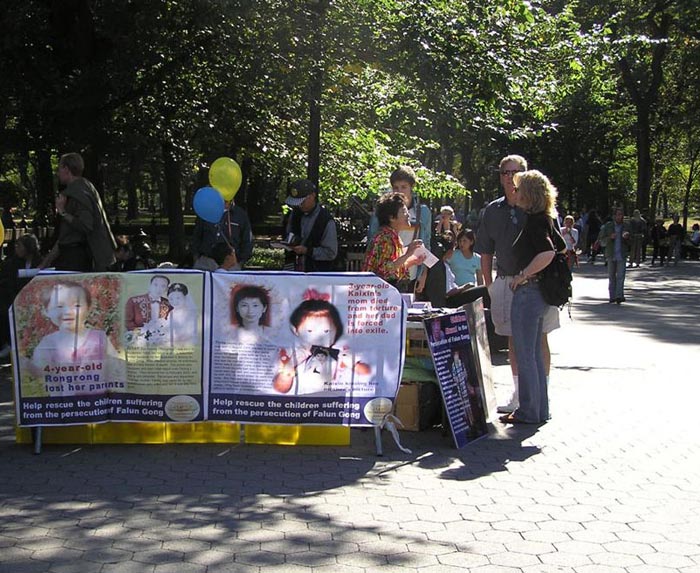 中央公园是曼哈顿人周末休闲的好去处。这一天秋阳和煦,公园内游人如织,人们或携家带口,或访朋会友。义演活动中,人们或阅读传单,或签名支持反迫害和营救受迫害法轮功儿童活动。