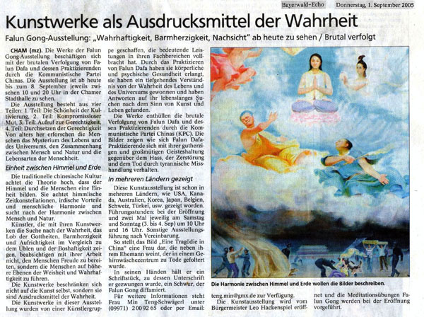 真善忍画展为东巴伐利亚地区带来了福音。人们在画展中看到了真正的善与恶,更确信了善恶有报的天理。