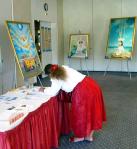 九月底的周末,真善忍国际美展在帕绍市的假日酒店 ( Holiday Inn)举办。美展给来宾留下了深刻的印象。一位艺术家接到画展介绍资料后,立即赶来参观,他说,他非常欣赏画作“天人合一”。作为艺术家,就应该表现正的,这是他努力的方向。他认为,画作“天人合一”就是一幅将艺术导向正路的佳作。