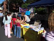 有些人很高兴有此机会学习法轮功,并告诉学员他们很有兴趣在里特呼德镇成立一个炼功点,另一些人看到揭露被中共普遍使用来迫害法轮功的酷刑的图片时则变得非常沉默,并严肃的思考着。