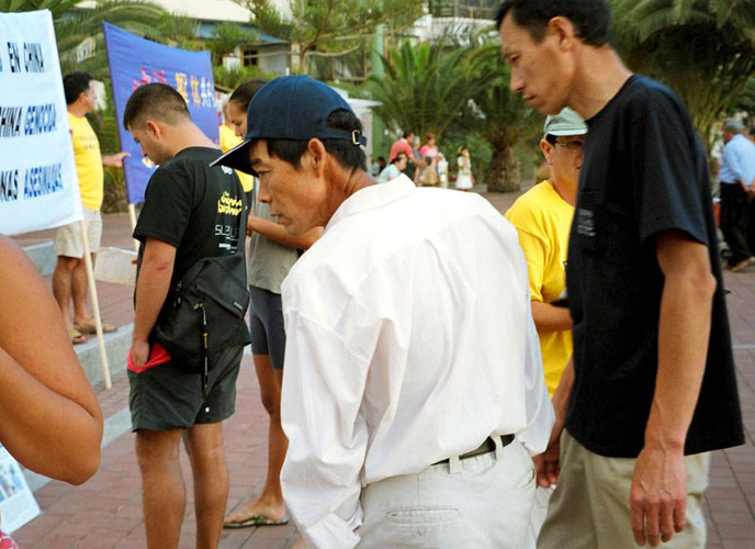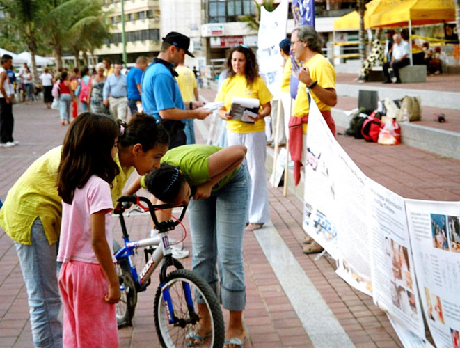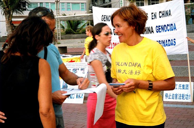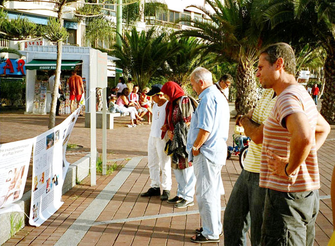 【明慧网2005年10月8日】为了让尽可能多的人了解到发生在中国的迫害法轮功的事实,2005年9月24日下午,西班牙南部的加纳利岛学员,首次在市中心举办制止中共迫害法轮功的征签活动。学员们分为两组,一组演示功法,另一组则向所有前来观看的人们分发真象资料、讲真象。