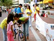 一位路人向学员说,虽然他是左派思想的人,但是无论如何也不能认同迫害和酷刑的发生,并要求签字支持法轮功和反迫害。