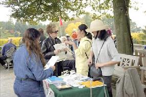 一位西人女士在看了一些资料后表示很感兴趣,还当场学功,并买了书和CD。