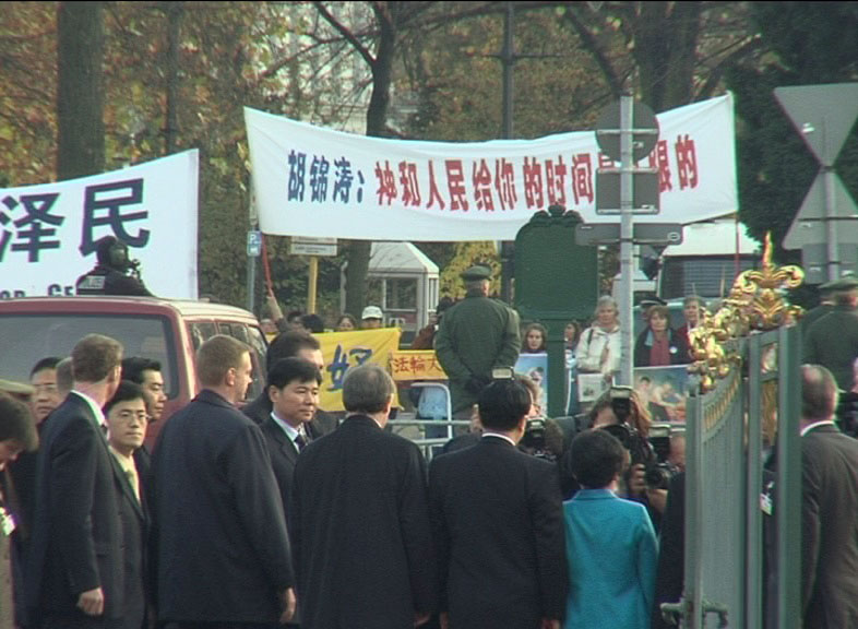 为了抗议作为中共头领的胡锦涛来访,柏林各地的示威活动不断。