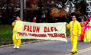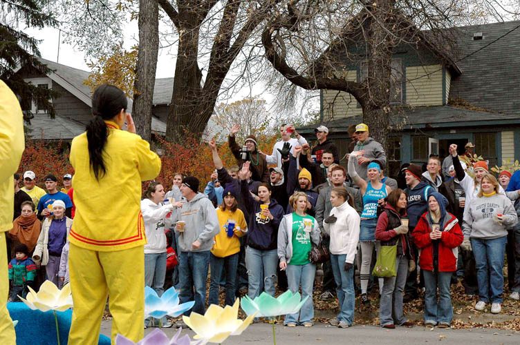 【明慧网2005年11月2日】2005年10月22日,法轮功学员再次应邀参加了南达科他州立大学(South Dakota State University)的返校节(Homecoming Hobo Day)游行。