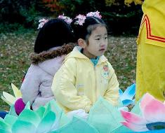 当天天气虽冷,但观看游行的人非常多。法轮功的队伍被排的很前,一路上观众掌声不断;学员给观众准备的小礼物──印有法轮功信息的书签,供不应求,游行中途就发完了;很多人是毕恭毕敬的接过书签。