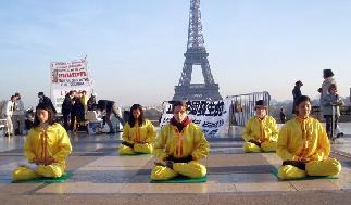 在营救中国受迫害法轮功儿童的背景音乐声中,手持麦克风的主持人分别用英、法文向观众介绍法轮功功法,讲述发生在中国大陆的迫害真象。在广场上,真人模拟反酷刑展吸引了众多的游客围观;旁边身穿黄色炼功服装的学员们正在整齐的展示功法;真象展板旁的莲花台前围满了来学做纸莲花的孩子们;几幅揭露中共迫害法轮功儿童的美展油画作品也吸引了喜爱艺术的人驻足观赏;铺在地上的白布因为签满了名,换了一块又一块……这些不同类型的同步展示共同烘托出了一个正义的主题:停止迫害法轮功,营救受迫害法轮功儿童!