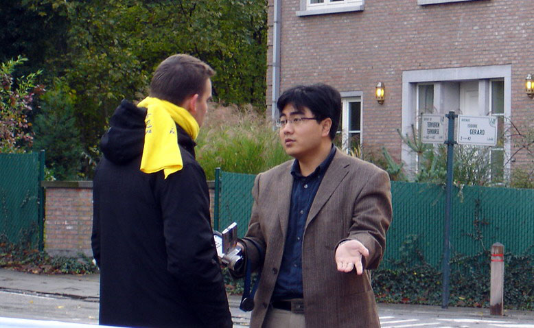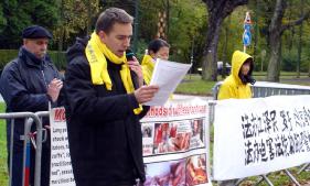此次活动中,中使馆曾有人员出来干扰、摄像,学员上前向其讲明善恶有报的道理,告诉他中共迫害法轮功是天理不容的,迫害是会被制止的,然而每一个人的所作所为都会被记录在案。他听后就转身走回到中使馆里去了。
