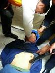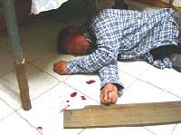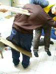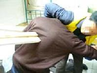 2)再带一学员进屋,两个四防抡起大木板子就打,把人打跪在床边,四防仍然狠命的打,学员的后背、头部均被打伤,最后昏死过去。(如图29、30、31)