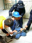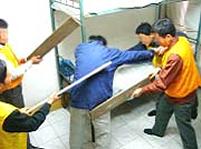 此种酷刑是锦州教养院新收大队的恶警对新抓进来的法轮功学员通常采用的酷刑之一。以下是恶警指使四防员连续打昏、重伤三名大法学员的经过,分三个步骤描述。