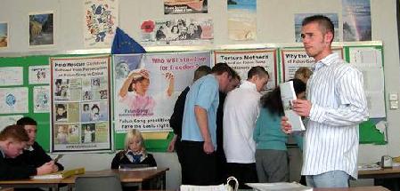 【明慧网2005年11月26日】两位苏格兰法轮功学员,于2005年11月17日星期四应邀至盾巴登的盾巴登高中(Dumbarton Academy),就法轮功在中国所遭受的人权迫害真象做专题介绍。介绍会的对象是一班正在学习有关中国课题并对了解迫害真象特别感兴趣的五年级学生。