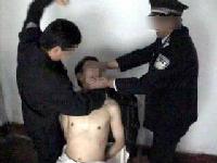 此种酷刑极为阴毒是将学员扒光衣服双手背铐在椅子上,由一恶警痛打大法学员的头部,另两个恶警用电棍电击学员生殖器和脚心,有时还伴随着暴打,受刑人极度痛苦。曾对大法学员施过此酷刑的三名恶警有:李松涛、张加斌、冯子斌。