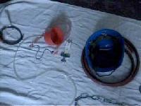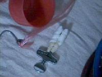 为了防止大法学员说话,恶警们用粗铁丝围成一个带尾巴的凹型圆塞进大法学员的嘴里,压到舌头面上,再延伸到嗓子眼儿处,又用绳子把这个嚼子系到脑后勒紧固定住。上了这种刑具后使人马上感到恶心呕吐。然后恶人把录音机的耳塞子塞到大法学员的耳朵里,音量放到极限,逼迫大法学员听诽谤之辞。凶残的恶警在给大法学员戴嚼子的同时,还踩着大法学员的颈部和脸部,电击颈部。