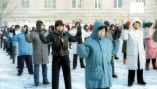 图6:长春大法学员在1999年冬运会期间洪法炼功