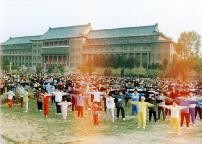 图8:99年前长春市文化广场(即原长春地质宫)大法弟子集体炼功场面