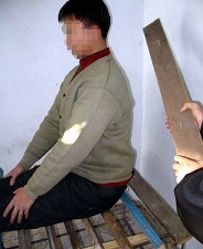 酷刑“坐床”就是坐在一种很小的带楞的凳子上,必须腰直颈正,稍有晃动,就会遭到毒打,经常有不放弃信仰的学员的臀部坐烂,露出骨头。每天除了吃饭、大小便外,其余的时间就是伸腿静坐在硬板床上,从早上7点到晚上10点,并且床上不准许铺任何东西,同时还强迫背监规,限制时间必须会背。如果再不妥协,就改为坐木棍或木板条,用不了两天臀部就坐破了。