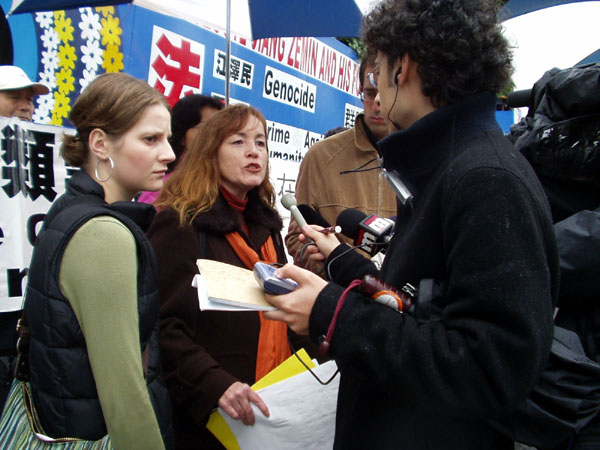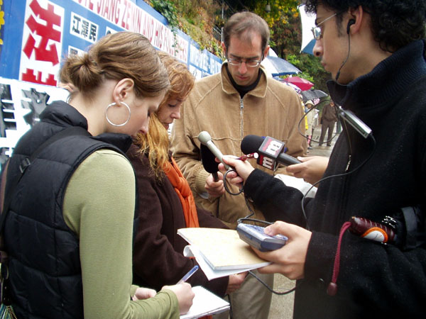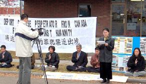【明慧网2005年11月3日】(明慧记者李华温哥华报导)2005年11月2日上午,温哥华法轮功学员于中领馆前召开新闻发布会,通告正在加拿大访问的中共吉林省委副书记林炎志,因积极参与迫害法轮功在多伦多被受害人起诉。温哥华法轮功学员同时向温哥华中领馆官员宣读《法轮大法学会公告》,警告那些还在帮着中共迫害法轮功的各级头目,包括中共驻海外的使、领馆人员,赶快悬崖勒马,弃恶从善。