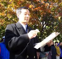 加拿大法轮大法学会代表张照進用中文和英文分别宣读了法轮大法学会10月9日发表的公告。