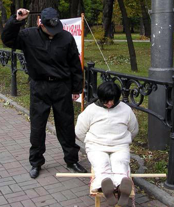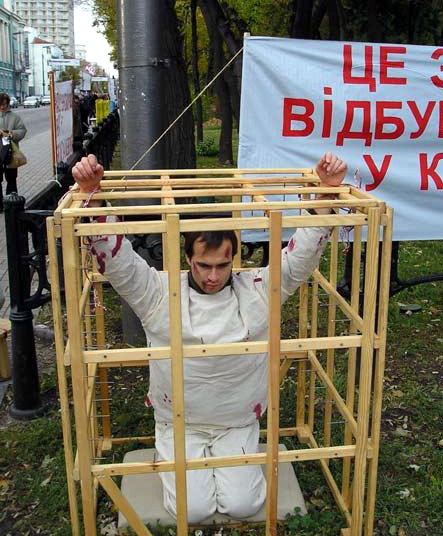 乌克兰法轮功学员演示中国同修在中国受到的迫害