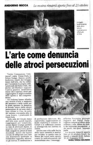 他们在安多尔诺(ANDORNO)举办了这个艺术展来支持他们的思想和他们为之付出的事业:向全世界揭露在中国发生的残酷迫害,法轮大法修炼者正在遭受江泽民的迫害。