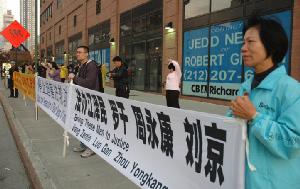 法轮功学员的心声什么都动摇不了法轮大法弟子在纽约中领馆前的静坐。