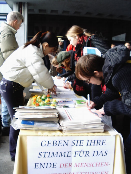整个征签活动中,签名的大学生源源不断,学生们用行动表示了对人权迫害,尤其是在中国发生的人权迫害的积极关注。