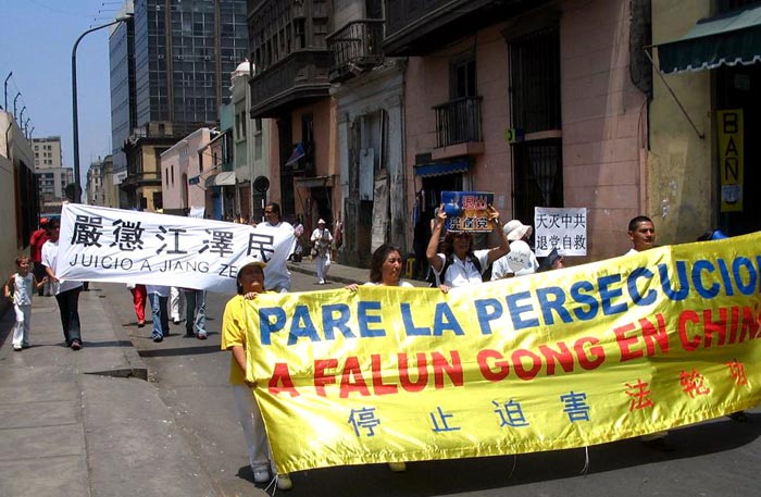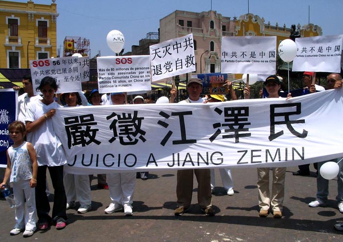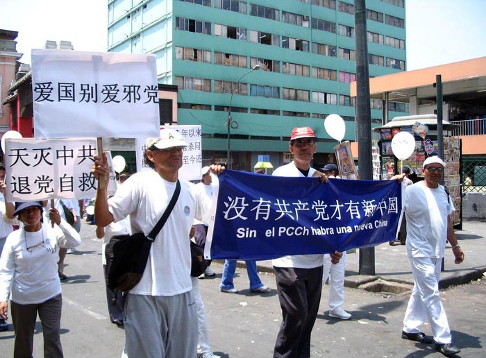 【明慧网2005年12月13日】《九评共产党》自去年11月发表以来,引发退党高潮,至今已有626万人上网发表“退党声明”邪党解体已是不可逆转的事实。2005年12月11日上午,秘鲁西班牙语版大纪元La Gran Epoca在首都利马举办游行,声援620万人退出中共;许多法轮功学员参加了此次活动。