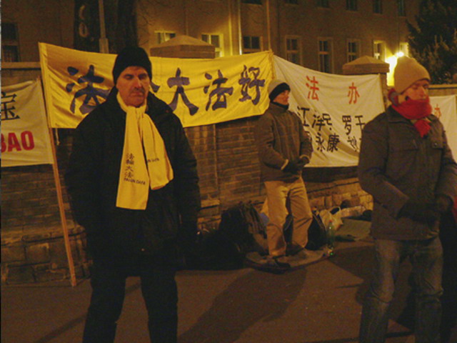 【明慧网2005年12月15日】从2005年12月8日中午到12月9日中午中共总理温家宝访问了捷克。法轮功学员在中领馆前如期进行连续24小时抗议活动,呼吁制止迫害