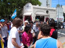 据当事的法轮功学员介绍,女学员受伤情况比较严重。当时在场的有其他团体的阿根廷人在那里示威,他们过来帮助阻止那些暴徒殴打法轮功学员。