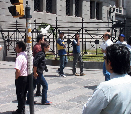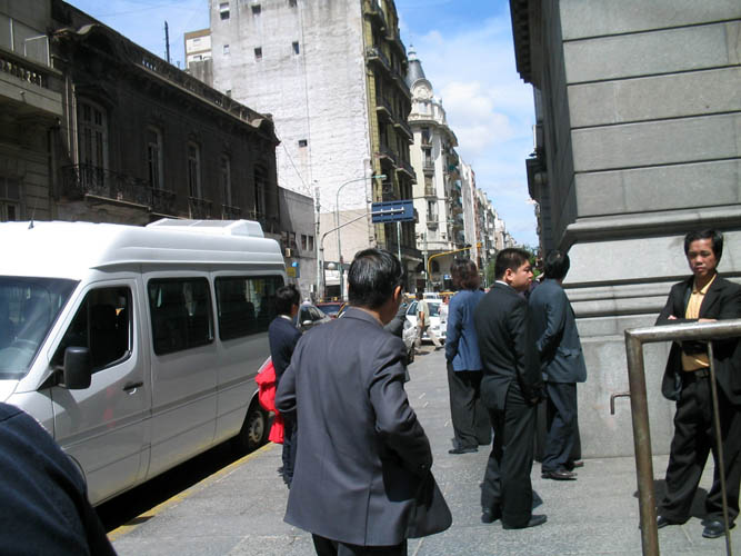 在阿根廷人士的保护下,学员们得以接受一些采访。阿根廷警察只是试图将中共暴徒与学员隔开,并没有阻止他们对学员的攻击。很明显,警察接到了不阻止这些暴徒的命令。这些暴徒穿着西装,装扮成好象他们是中共特工或是代表团的成员。警察没有逮捕任何攻击法轮功学员的暴徒。