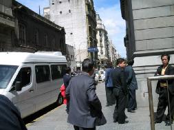 【明慧网2005年12月15日】(明慧记者苏青、王英报导)2005年12月14日,法轮功学员在阿根廷国会前向罗干率领的中共代表团抗议时,遭到中共使馆派出的暴徒的殴打,横幅和真象展板被抢走。法轮功学员表示,要追究暴徒的刑事责任,以及幕后凶手。