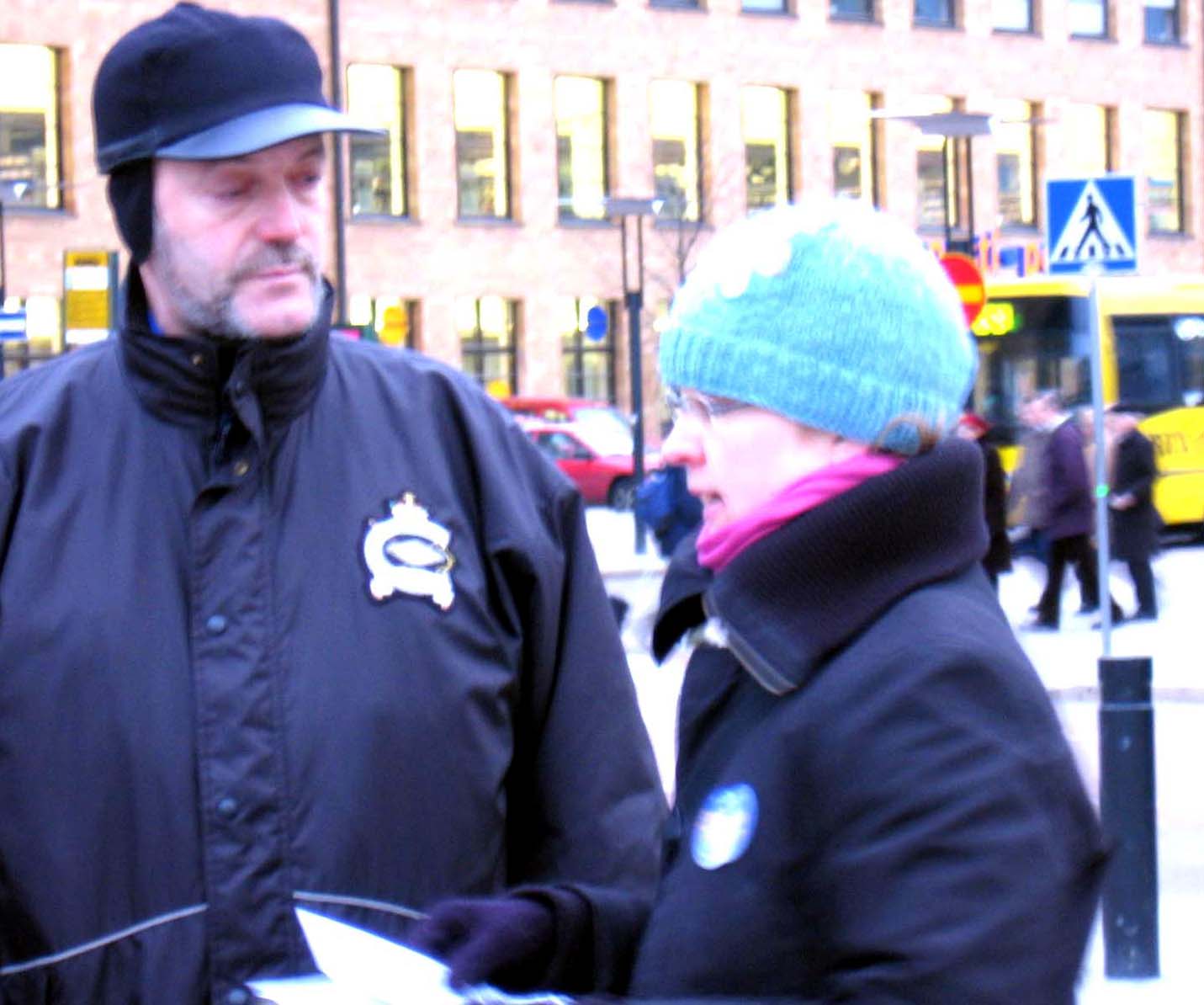 一位老年芬兰女士也问了同样的问题:你们在做什么?当明白是传九评,声援退党时,她说,其实芬兰人民都知道这些,关键是我们的政府和官员们应出来表态。