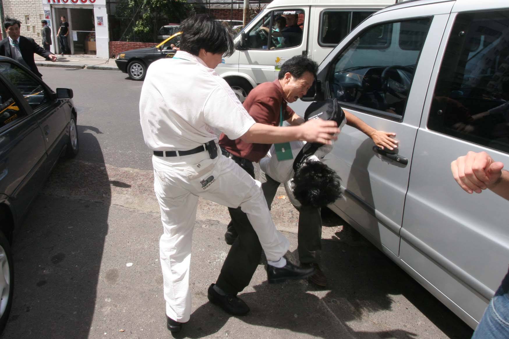 2005年12月14日,在中共政法委书记、610办公室头目罗干到阿根廷期间,和平抗议迫害的法轮功学员遭到中共使馆派出的暴徒的殴打,他们用暴力抢走学员手中的横幅、真象传单和私人物品,失去理智的在媒体面前疯狂殴打法轮功学员。在周围参加示威活动的阿根廷人士看不过去了,出手阻止,也遭到暴徒殴打,有的甚至被打出血。针对这一恶性暴力事件,法轮功学员表示,将向阿根廷联邦法院控告中共大使馆雇凶施暴,并将追究暴徒的刑事责任。