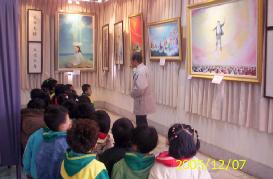正义国小陈老师在校长的推荐下,也带领四年级的孩子到社福馆参观。陈老师对油画颇有涉猎。她说:真是太震撼了!不过,表现法轮功遭到迫害的图像,让孩子们直呼好可怜哦!陈老师藉机向孩子说明妒嫉心的可怕,中共前党魁江××就是因为妒嫉法轮功受欢迎,因而发动了迫害。