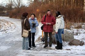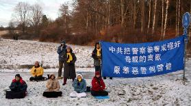 在寒风中学员们不停的炼功,发正念,并向过往的民众发放真象资料。对中共不断制造出的、令人发指的丑恶罪行,人们感到震惊,纷纷谴责这种禽兽不如的残暴行为。