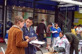 人们签名声援法轮功