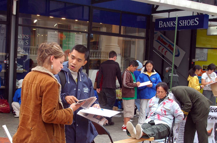 【明慧网2005年12月19日】2005年12月18日,法轮功学员在新西兰首都惠灵顿举办反酷刑展揭露中共对法轮功的残酷迫害