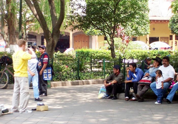 第一天,我开始在危地马拉安提瓜岛的中心公园炼功。许多当地居民、学生、游客、擦鞋的人,一群群的驻足观看功法演示,三个小时内,300份传单就被拿完了。